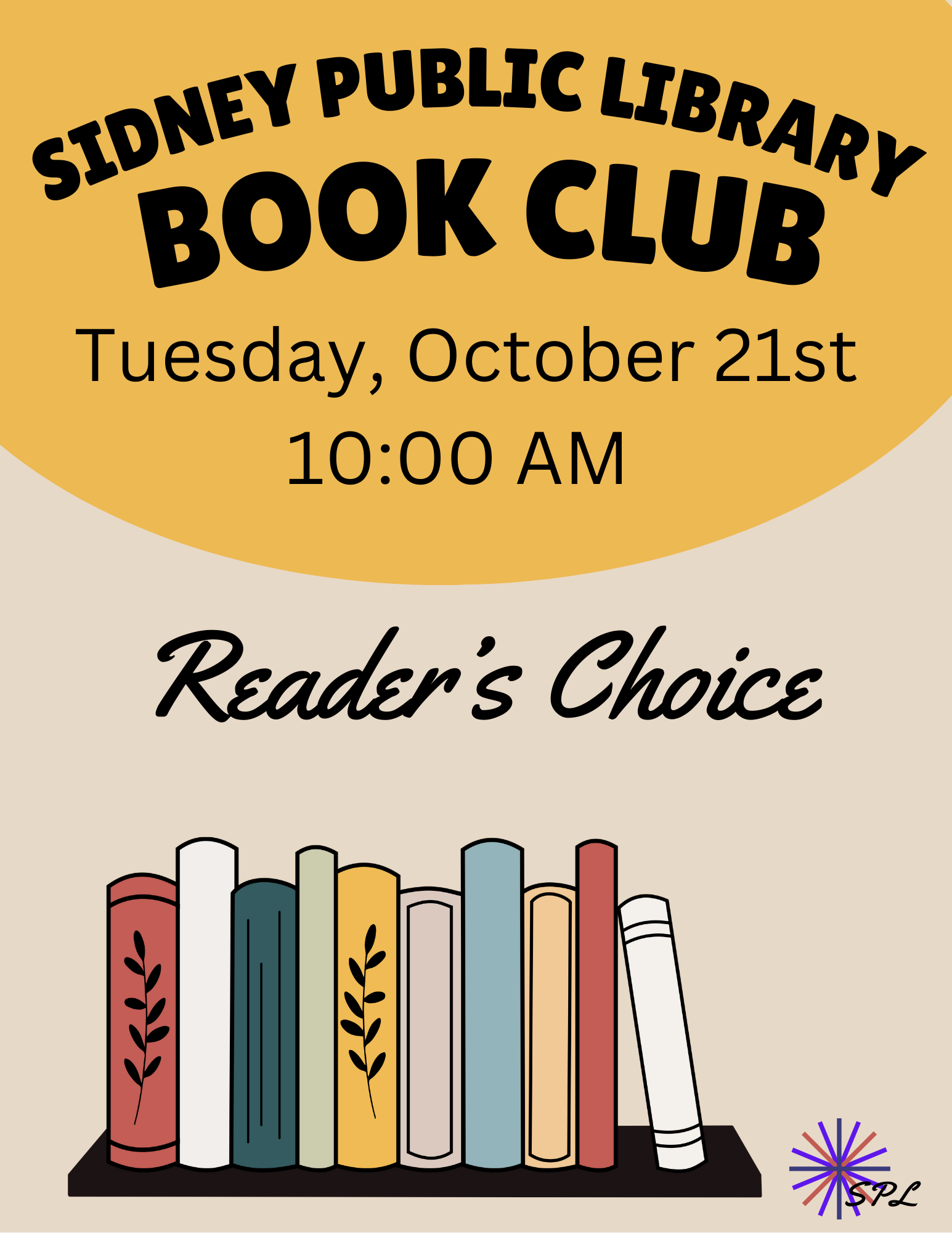 If you are interested in a different type of book club, such as genre-based (like science fiction), age-based (like teens), or one that meets in the evening please contact the library to see about setting something up. The Sidney Library will happily entertain book club ideas.